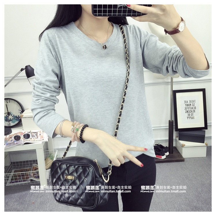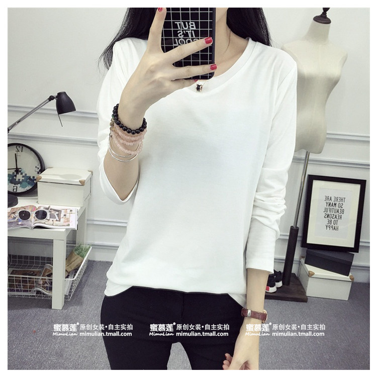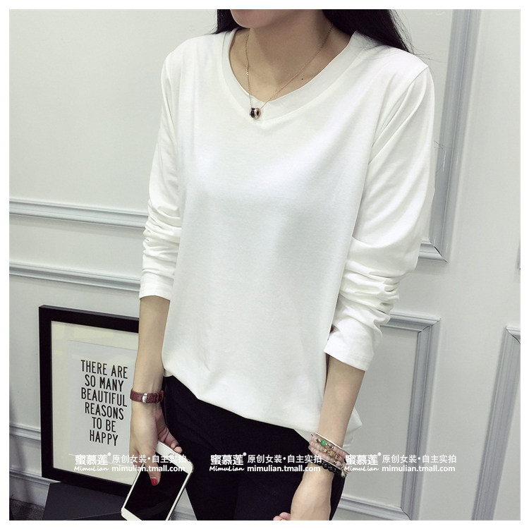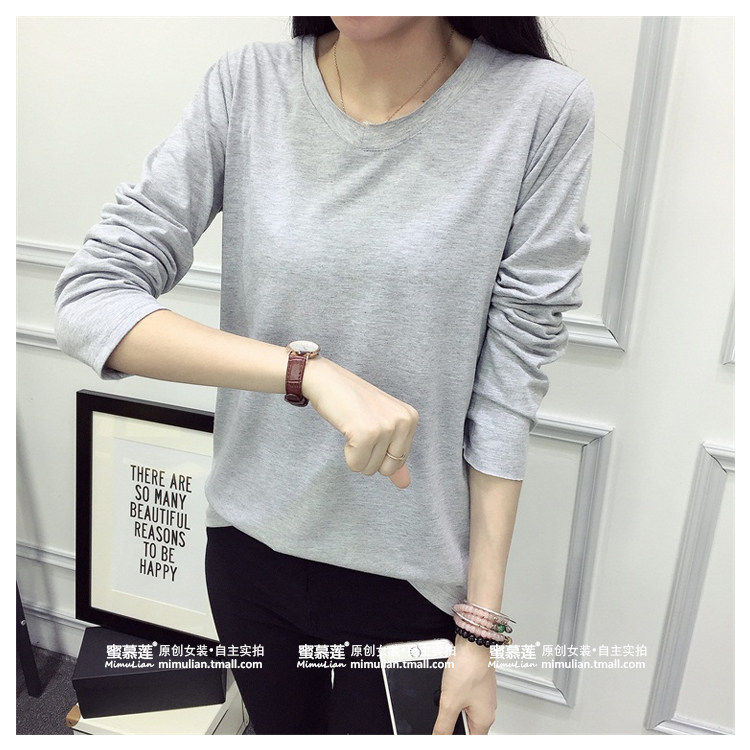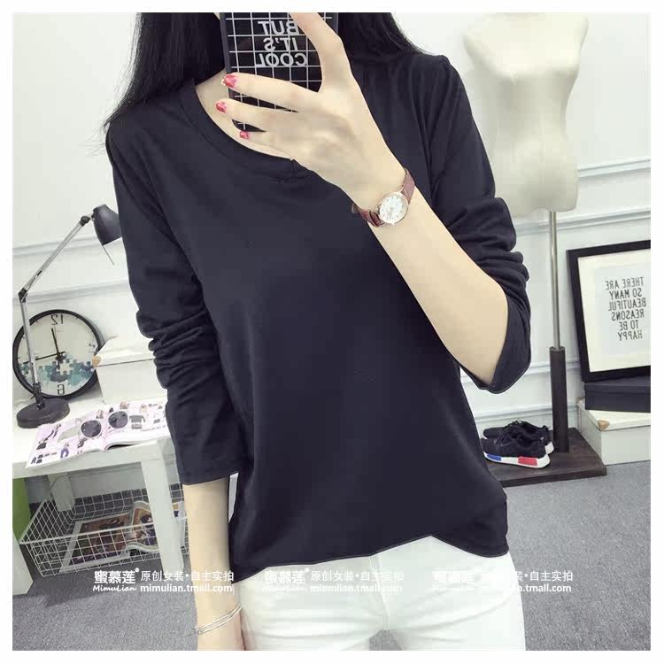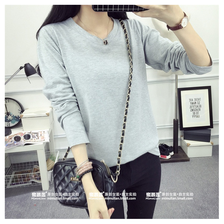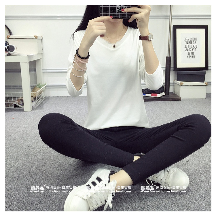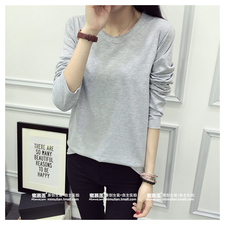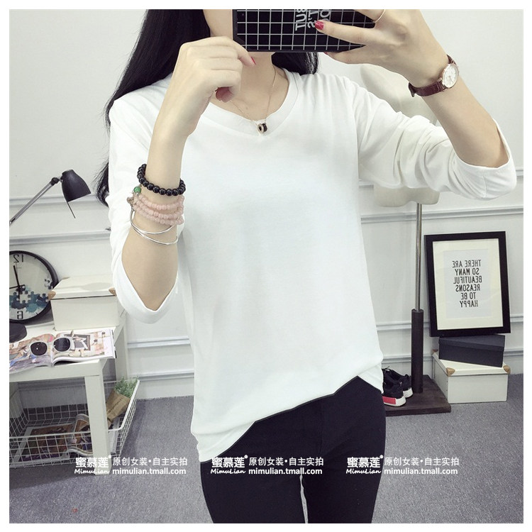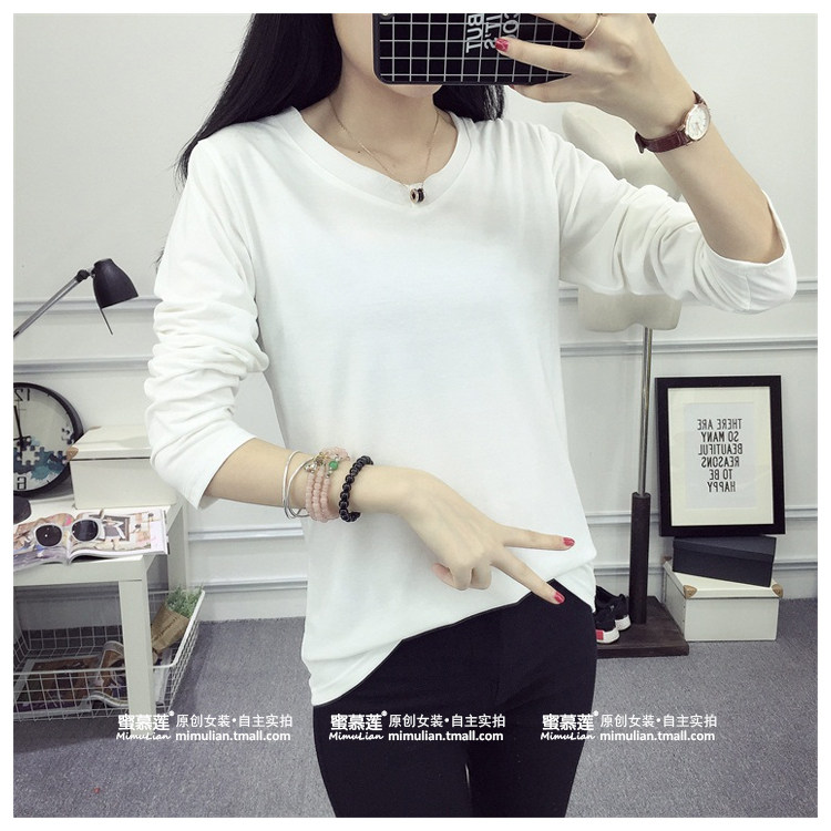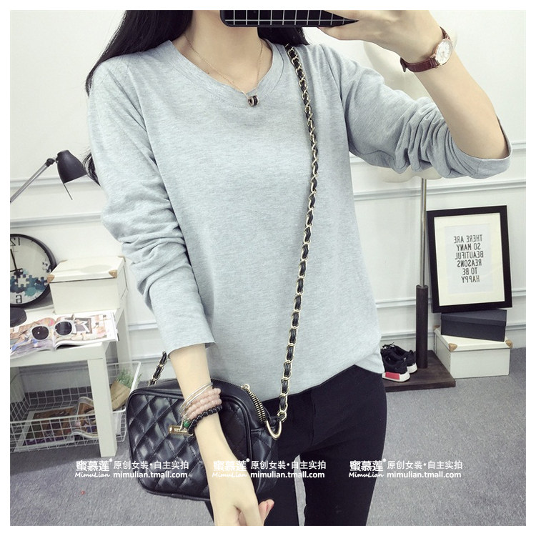 T恤女长袖学生V领纯色棉打底衫韩版大码宽松显瘦百搭上衣秋冬装潮