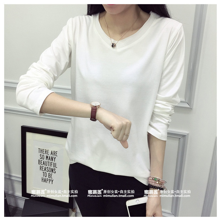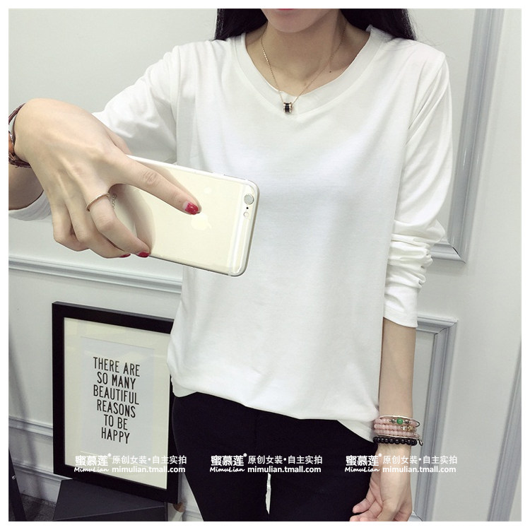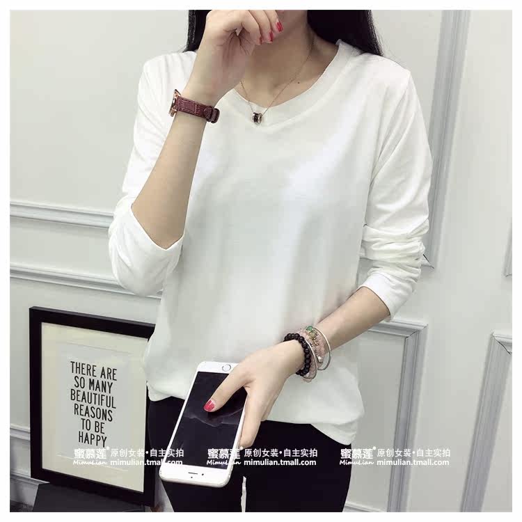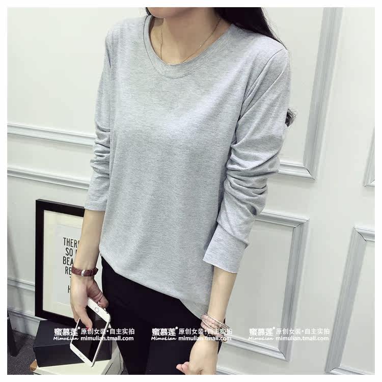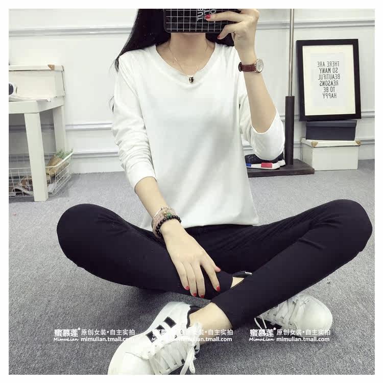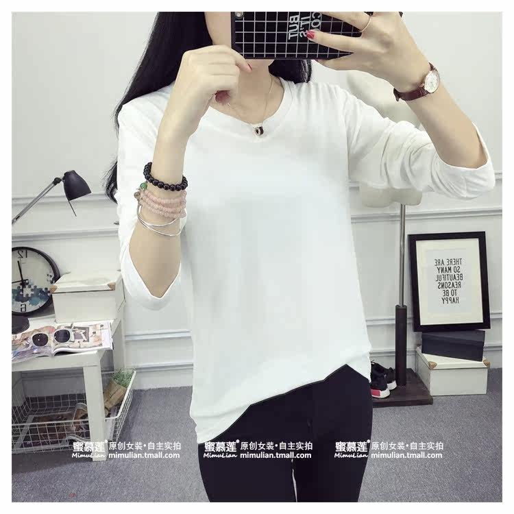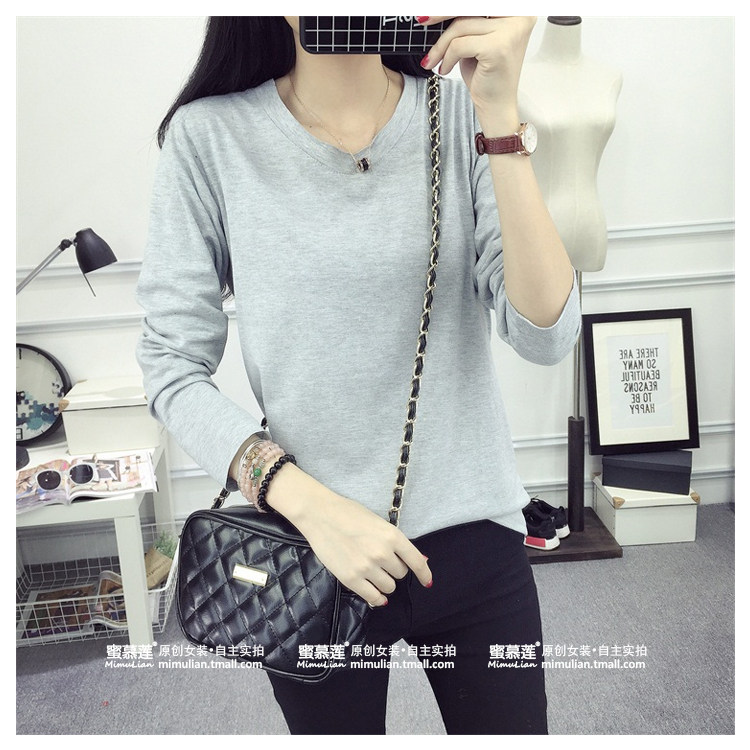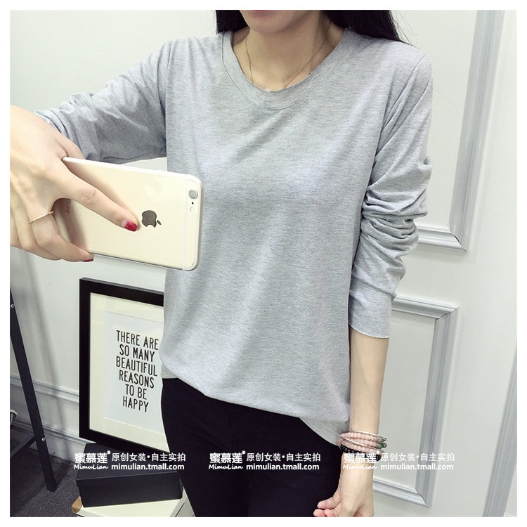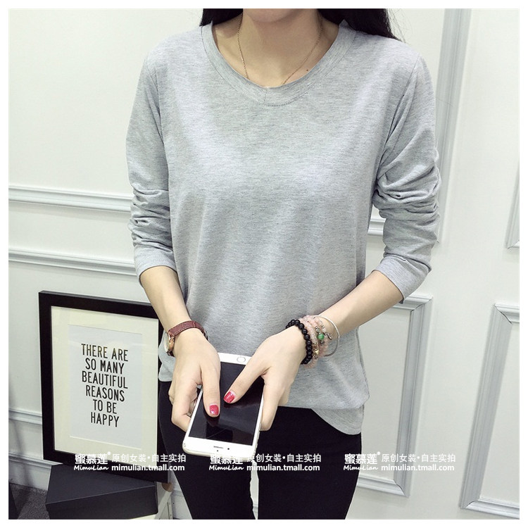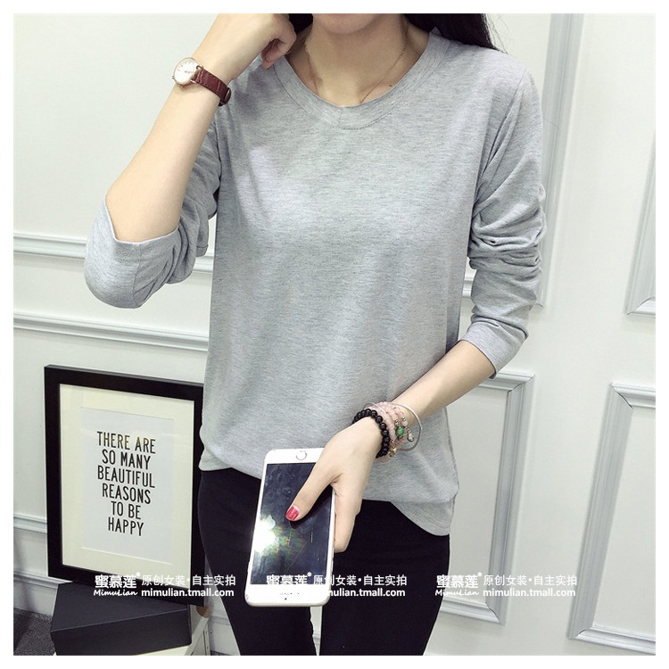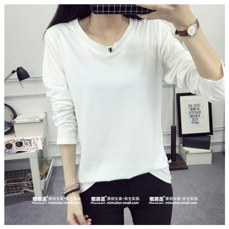 T恤女长袖学生V领纯色棉打底衫韩版大码宽松显瘦百搭上衣秋冬装潮