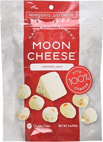 -. Binding : Grocery -. Brand : Moon Cheese -. Feature : Moon Cheese Snacks Moon Cheese High in protein / All natural Gluten free Excellent source of calcium / Moon Cheese is crunchified 100% natural cheese / It's a perfect on-the-go healthy snack with no refrigeration required / This pack of three includes one 2 oz bag of Cheddar, one 2 oz bag of Gouda, and one 2 oz bag of Pepper Jack Moon Cheese -. Label : Nutradried Creations LLP -. Manufacturer : Nutradried Creations LLP -. NumberOfItems : 3 -. ProductGroup : Grocery -. ProductTypeName : GROCERY -. Publisher : Nutradried Creations LLP -. Studio : Nutradried Creations LLP -. Title : Moon Cheese, 2 Oz. Pack of Three