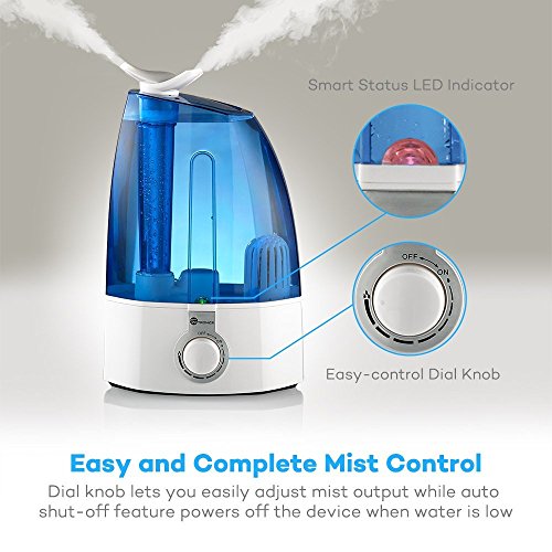 Cool Mist Humidifier, TaoTronics Ultrasonic Humidifiers for Bedroom with 3.5L/0.95 gallon Large Capacity, Classic Dial Knob Control and Two 360° Rotatable Mist Outlets, US Plug 120V
