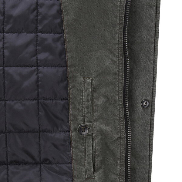 빈티지한 텍스쳐가 돋보이는 남성 코트.- 이면 퀼팅 안감에 뛰어난 통기성,이지케어,? 단열 효과의 comfortemp 충전재로?? 보온성을 전해줌.- 하이넥 이면 립조직으로 밀착감을 높였음.- 사이드,인 포켓으로 간단한 수납이 용이함.- 소매단 2 스냅 버튼으로 둘레 조절이 가능함.- 등판 밑단 센터 트임으로 활동성을 더해줌.- 동절기 시즌에 멋스러운 룩 연출이 용이함.