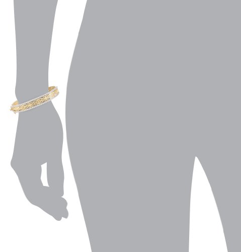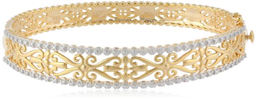 -. Title : 18k Yellow Gold-Plated Sterling Silver Two-Tone Filigree Hinged Bangle Bracelet, 7.25"