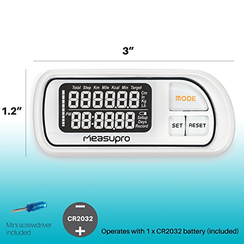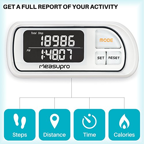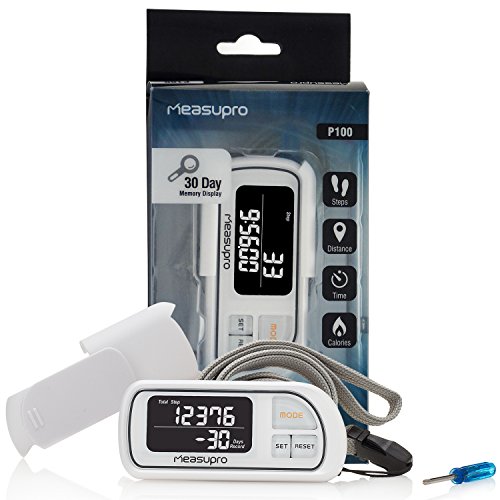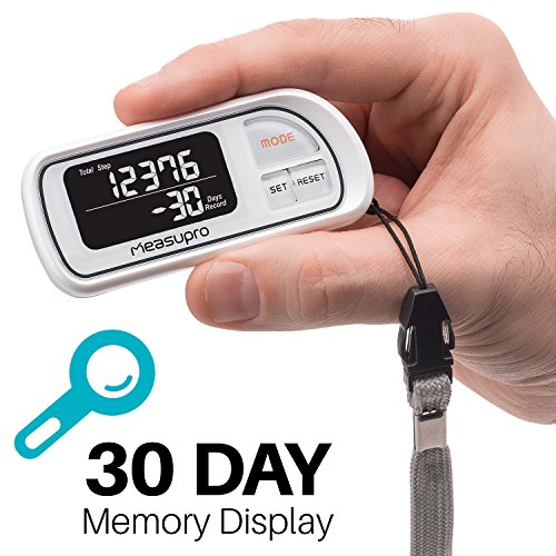 -. Title : MeasuPro Automatic Smart Sensor 3D Walking Pedometer Distance Fitness Tracker w/ 30 Day Memory, Clip-On Holder, Step Counter for Walking, Hiking, or Other Activities, Lanyard and Large Display, White
