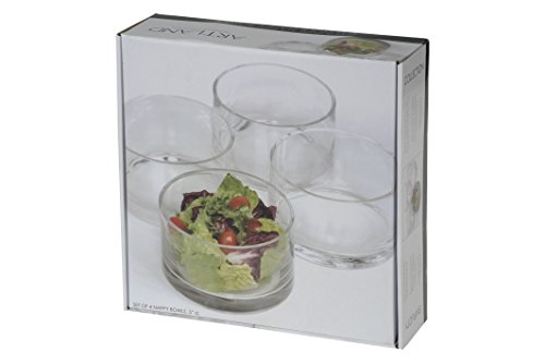-. Feature : Dimensions: 5D x 3H in. / Includes 4 bowls / Handcrafted of glass / Cylindrical shape with straight sides / Dishwasher-safe
