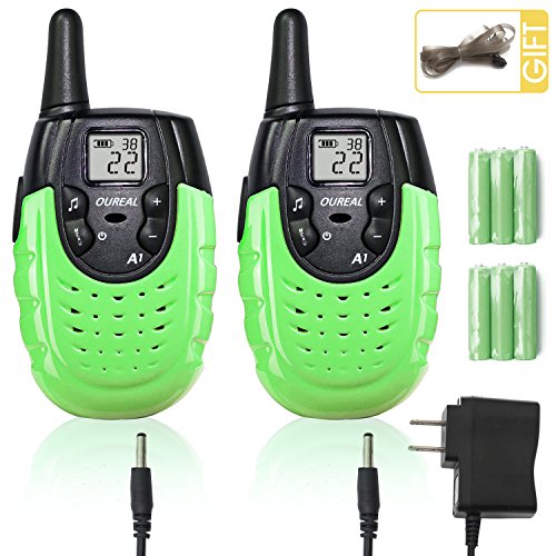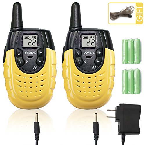 Oureal A1 walkie talkies feature a range of up to two miles, making these toys a perfect choice for games of Release or Capture the Flag, or for just general play around the neighborhood. Parents can have peace of mind through giving one unit to the kids while they keep the other. Call your kids home, or allow them to call for help, with the simple push of a button. Take them to the park so your kids can run and still be in contact.
