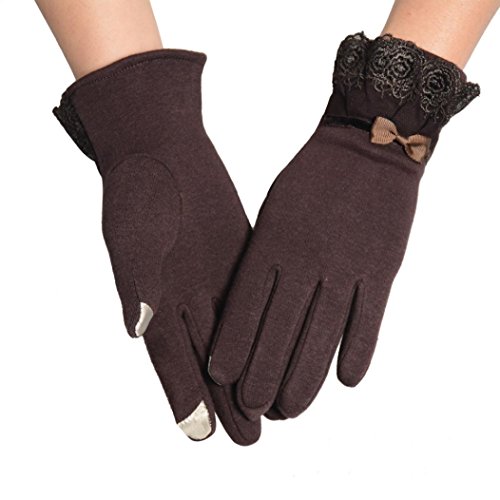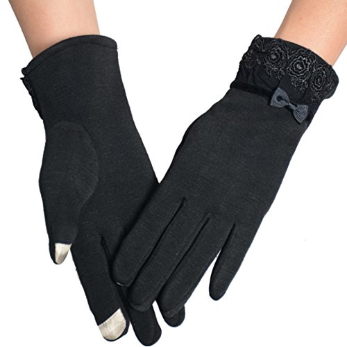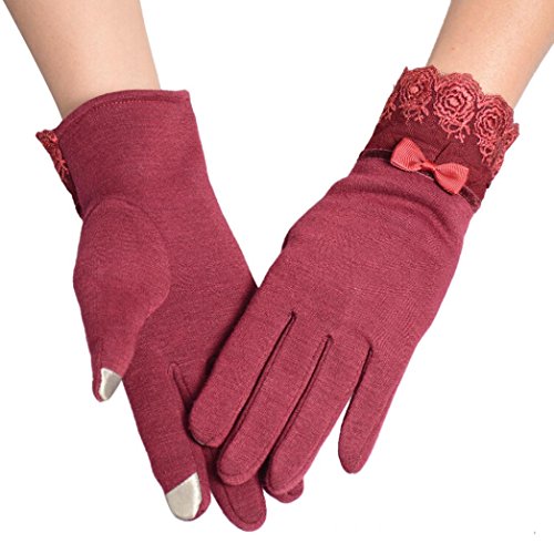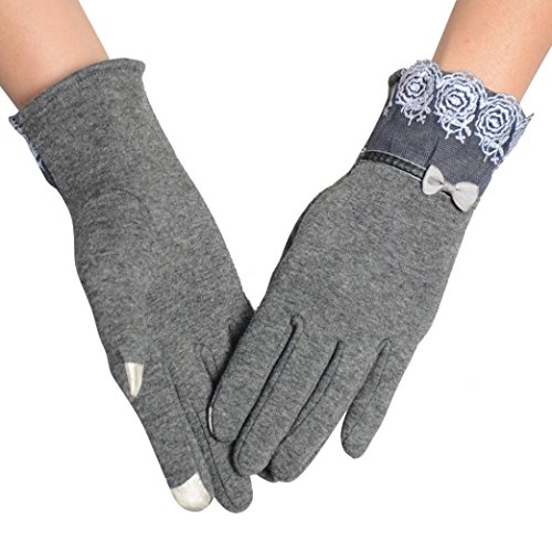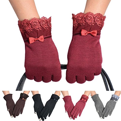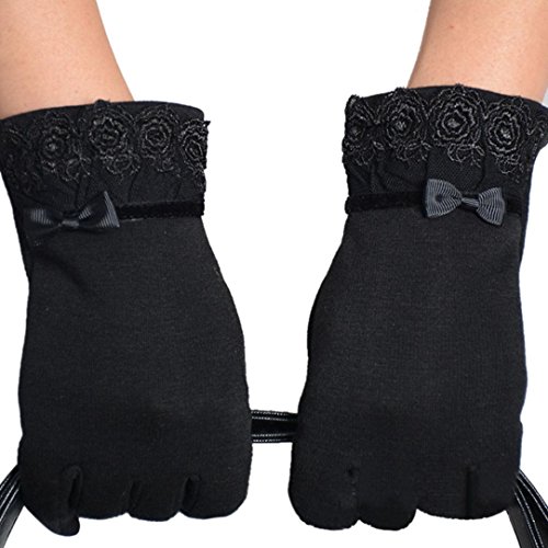 Voberry® Women Cute Lace Trim Warm Touch Screen Riding Drove Bow Gloves