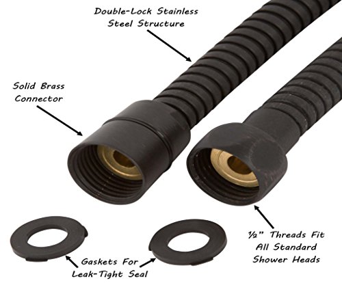 Aqua Elegante 60 Inch Flexible Shower Hose - Extra Long, Stainless Steel, Double-Buckle For Handheld Showerhead - Oil-Rubbed Bronze