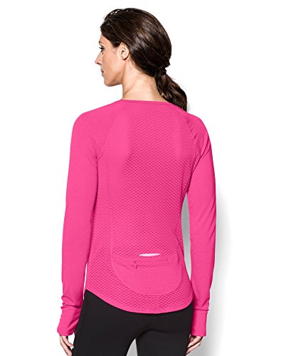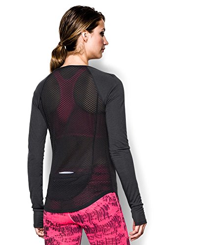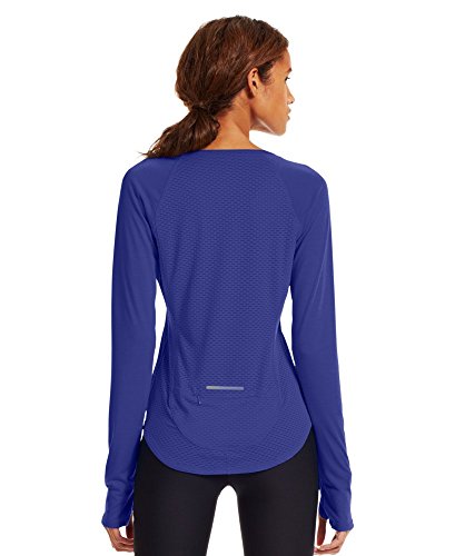 Soft and super-breathable construction feels great and works even better. Signature Moisture Transport System wicks sweat to keep you dry and light. Large, open-hole performance mesh side and back panels for unrivaled breathability. Flatlock princess seams create a slim, chafe-free silhouette. Raglan sleeves unlock mobility for serious range of motion. Slight drop-tail detail for just the right amount of coverage. Feminine scoop neck collar and thumbholes. Side seam zippered pocket to stash your stuff. 360° reflectivity offers extra safety during low-light runs. Polyester/Rayon. Imported.Feature