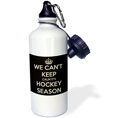 3dRose wb_171921_1 "We cant keep calm its hockey season, Black and Gold" Sports Water Bottle, 21 oz, White