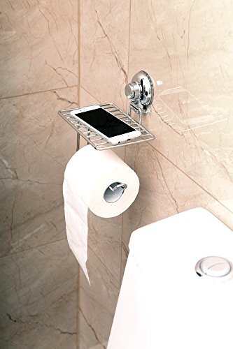 - STORAGE SHELF: Toilet paper holder with storage shelf, convenient to hold your mobile phone, wipes or other trivial things while sitting on the toilet or have a shower.