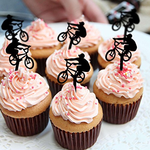 Ecape Cupcake Toppers,Bicycle Acrylic Toppers For Bridal Shower, Birthday,Wedding Table Cake Decorations DIY Party Favors Kits Cupcake Picks Set of 8 (Bicycle)