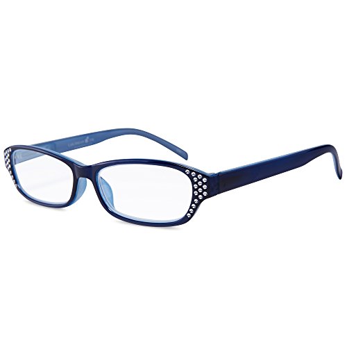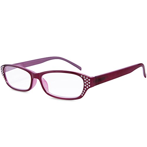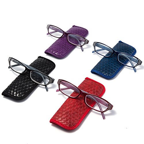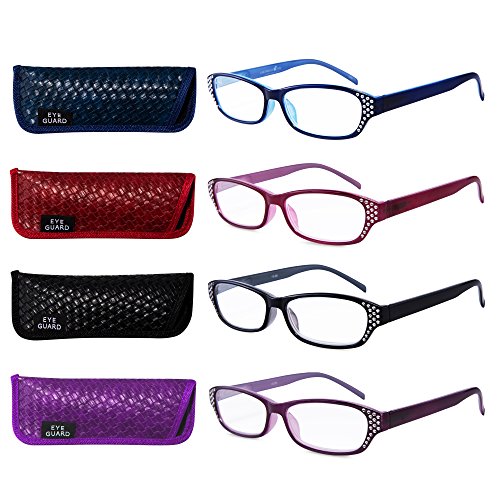 Studio : EYEGUARD Publisher : EYEGUARD Product Description 4 pairs of women readers at 1 low price with colors available:black,navy blue,purple and claret,all colors with jelly color effect inside. The crystal design on the frame make it exquisite and stylish for wearing. Spring arm fit most face size.It will give you crystal clear vision and become your good friends when reading fine prints on newspaper,in book etc..Also,convenient 4 sets enables you to keep a pair handy whenever you are. With their soft pouch,you can easily bring them to anywhere you need,like bedroom,office and so on. Last but not least,your support is the crowning glory for us. Meanwhile,your satisfaction really matters.Please don't hesitate to contact us to solve any problem before leaving any neutral or negative feedback.