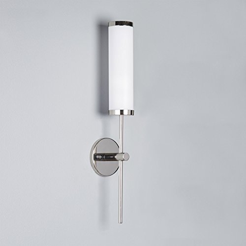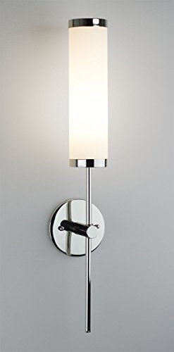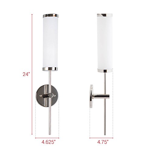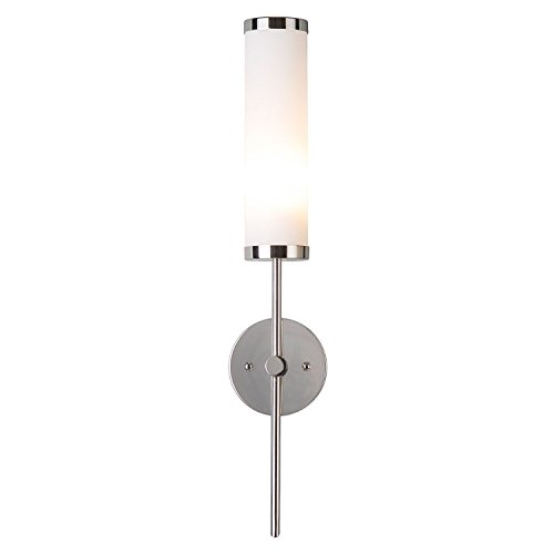 The Presto polished chrome wall sconce combines elegant styling with gorgeous softened illumination and is ideal for bedrooms, bathrooms and entryways. The fixture measures 24 Inches high by 4-5/8 Inches wide and extends 4-3/4 inches from the wall. It is ETL listed and uses one 13-watt maximum GU-24 CFL or LED bulb (not included).