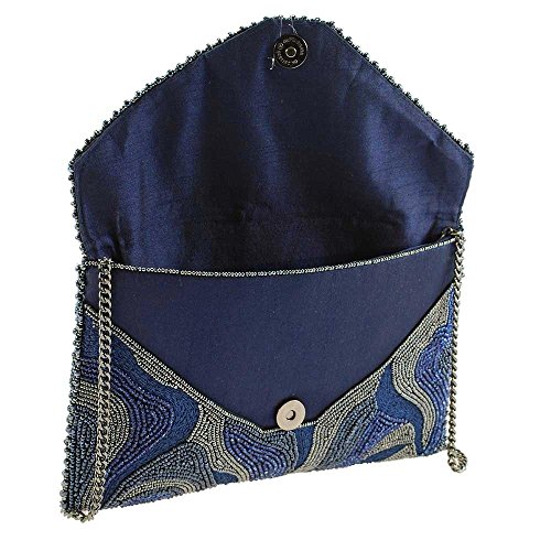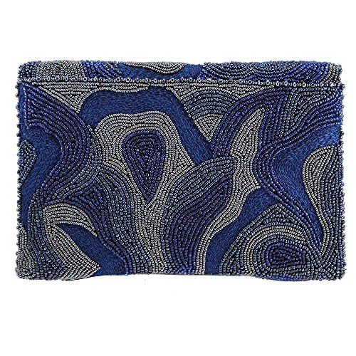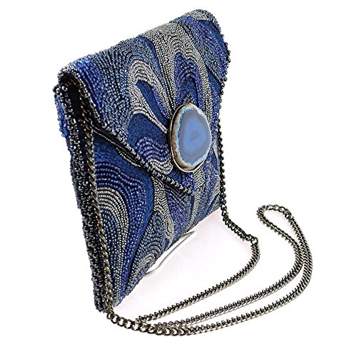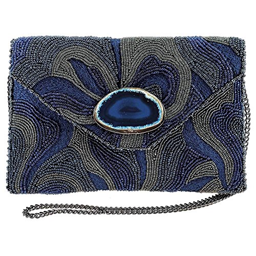 Mary Frances Earth Energy Navy Beaded Embroidered Crossbody Clutch