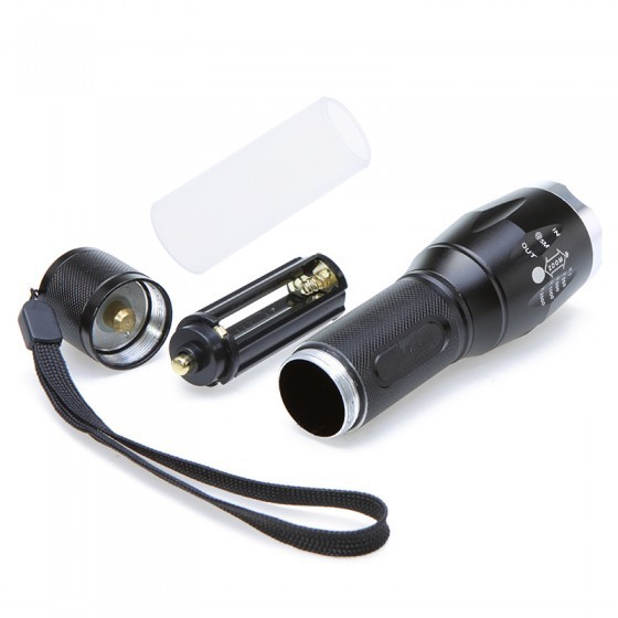 Super bright CREE LED flashlight and 5-mode design: high, low, flash, SOS.