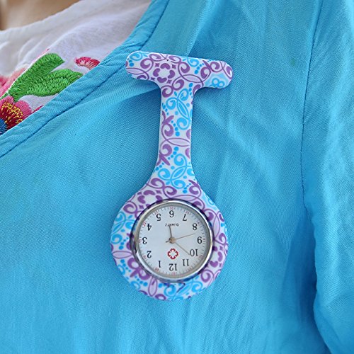 -. Title : Top Plaza Women's Girls' Fashion Floral Nurse Clip-on Fob Brooch Silicone Jelly Hanging Pocket Watch