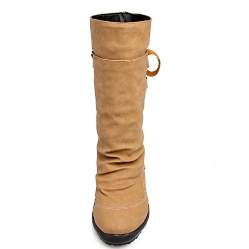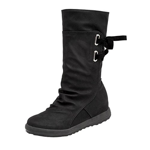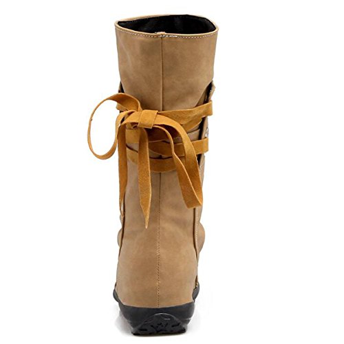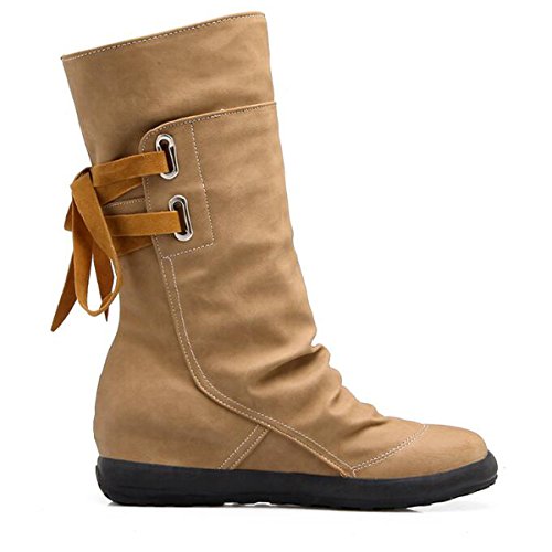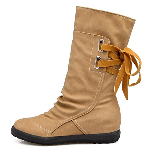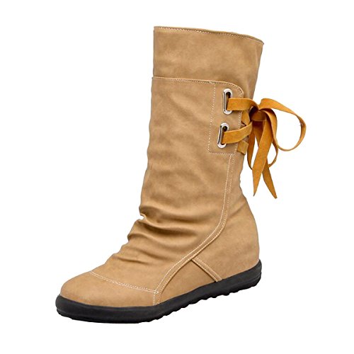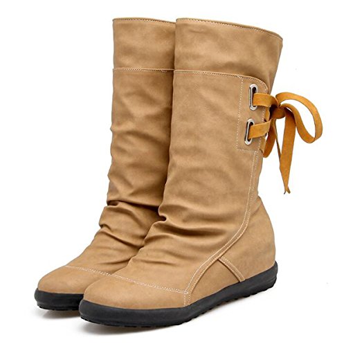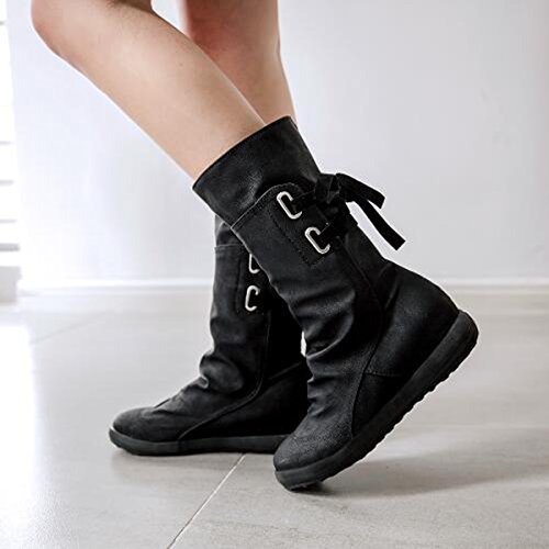 Mid-calf Boots Material:PU Leather Boots Clousure;Back Lace up Height;8.26" ;Top Round;12.99",Heel 0.39" Increased heel;0.59",Platform 0.59" Mid Calf Boots with Warm Fur Lined