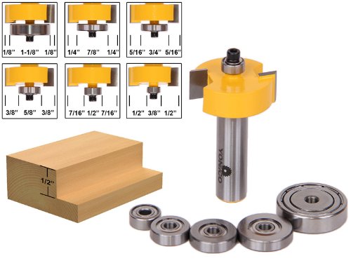 Yonico 14705 Rabbet Router Bit with 6 Bearings Set 1/2-Inch Shank