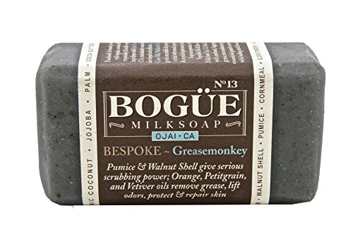 A hard working soap with 3 exfoliants, fine pumice to get in under the nails, ground walnut shell to scrub off grease and dirt, and cornmeal to remove odors. Essential oils of Petitgrain and Vetitver help remove lift grease and dirt while also soothing cut and abrasions making No.13 the ultimate mechanic or gardners soap. Bogue Milk Soaps are made with all natural plant based oils and goat milk, and use only pure essential oils, infused oils and herbs for scent and skin nourishment. There are no artificial additives, preservatives, dyes or fragrances, and unlike commercial soap, all the glycerin created in the making of soap, stays in the soap. Goat milk has long been known for its moisturizing qualities. It's a natural emollient that soothes and moisturizes your skin and together with a unique blend oils, produces a creamy, luxurious lather not found in commercial soaps.Feature