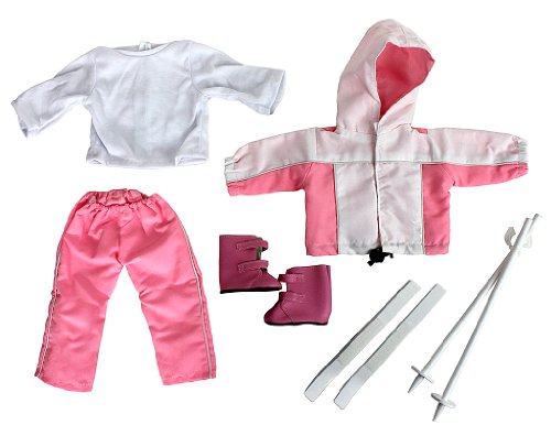 -. Feature : Hand Made, designed especially for that special Doll in your life (Doll Not Included) / Unique designs only available on Amazon.com / Includes Shirt, Pink Ski Pants, Ski Jacket, Boots, Poles, and Detachable Skis / Take your doll for a ski vacation! / Fits all American Girl sized dolls of approximately 18" tall