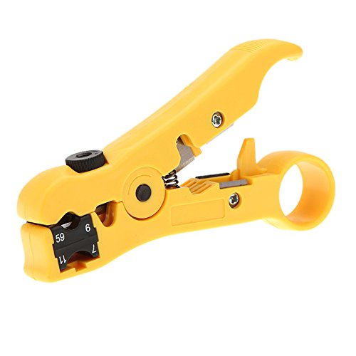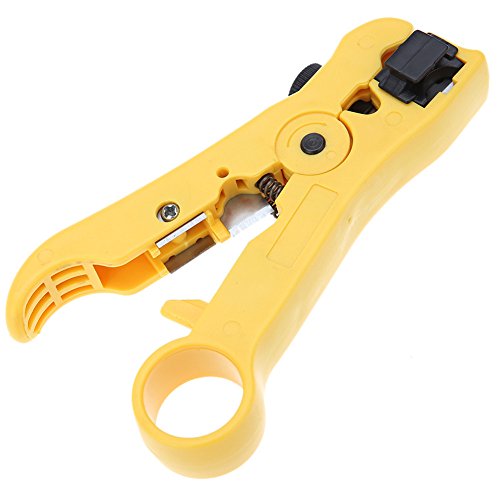 Universal Cutter /Stripper for CAT5 CAT6 Flat or Round STP/UTP Cable Stripping Hand Tool for RG59/6/7/11 Tool with ProTouch Grips (Yellow) by HCWS