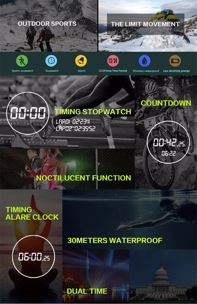 Feature:Complete Calendar,Shock Resistant,Stop Watch,LED display,Auto Date,Water Resistant,Chronograph,Back Light,Multiple Time Zone,Swim,Alarm,Repeater