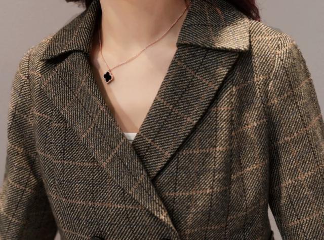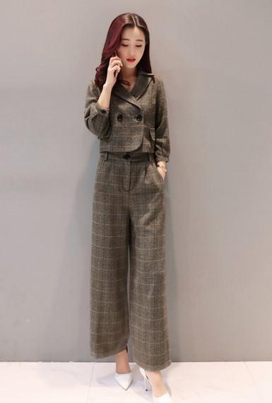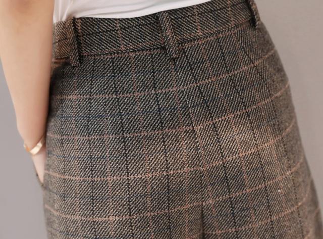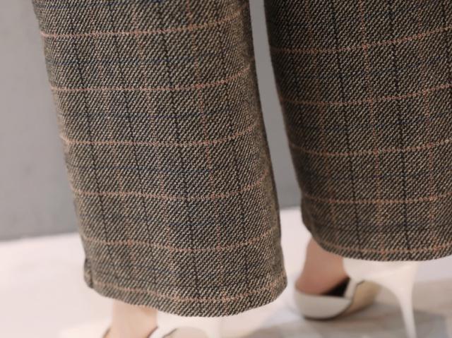 ワイドパンツとジャケットの組み合わせでグレンチェックがすっきりとひきしめてくれます♪