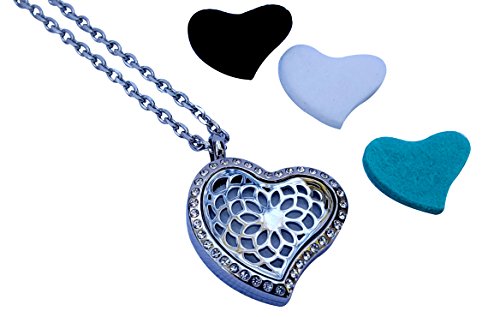 Luxury Aromatherapy Essential Oil Diffuser Necklace, Heart Locket Pendant with crystals by Essence Of Arcadia, Now available in US with 5-star...