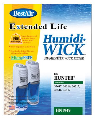 Studio : Rps Products Inc Publisher : Rps Products Inc Binding : Kitchen Product Description Best Air, Hunter Wick Replacement Filter For Hunter Humidifiers, Patented Reinforced Design For Longer Life Better Efficiency, Microfree, Antimicrobial Wick, For Hunter Model #35617, #36316, #36317, #36516, #36517, #31947, #31949. 0