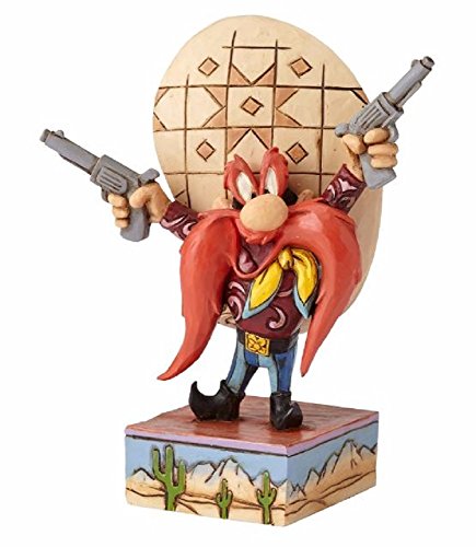 Brand New Jim Shore Looney Tunes Yosemite Sam Cantakarus Cowboy Figurine Jim Shore's Yosemite Sam Personality Pose, with six shooters ready for trouble, captures the essence of that beloved Looney Tunes character with Jim's signature colors and unique folk art style. Height: 4.125" H Item# 4054870Feature