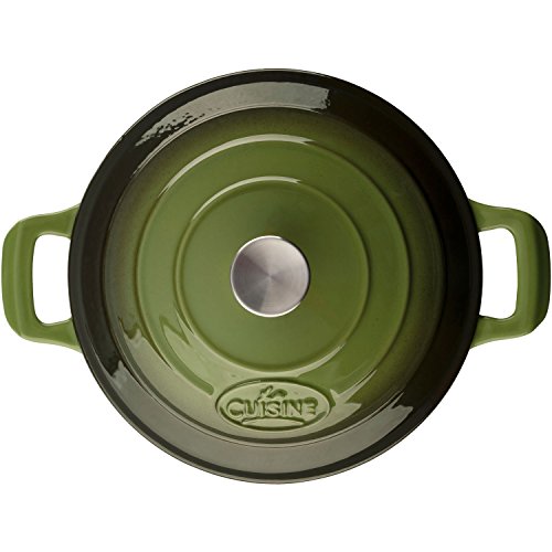 Studio : La Cuisine Publisher : La Cuisine Binding : Kitchen Product Description La Cuisine's LC 4150MB PRO Round 2.2 Qt. Cast Iron Casserole, in green, can be used to rustle up all sorts of mouth-watering dishes cooked on the stovetop or in the oven. La Cuisine's PRO cast iron cookware is crafted using sand molds, which are used only once, forging a lighter product with a very fine enamel finish that is truly unique. Wonderfully versatile, La Cuisine's PRO round casseroles are suited to the oven and all cooktops, including induction. Food heats through evenly and remains hot until served. The non-toxic, matte black enamel interior surface is scratch-resistant, stain-resistant, gives excellent food release that improves through continued use, and is simple to clean - just wash in warm water. Perfect for professional and domestic cooks alike, La Cuisine PRO gives you no-fuss, healthy cooking that looks great as it goes straight from cooking on the stovetop or in the oven to serving at the table or buffet (our trivets, sold separately are for table/buffet use). 0