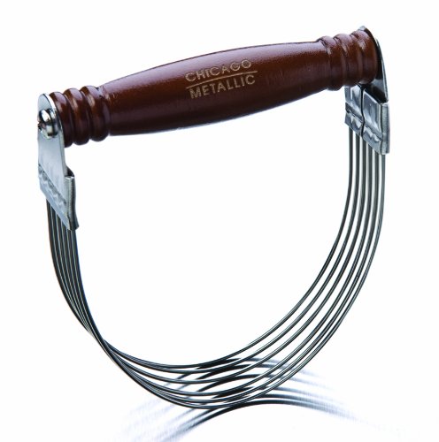 Studio : Chicago Metallic Publisher : Chicago Metallic Binding : Kitchen Product Description Chicago Metallic Baking Essentials is a new line that is sure to complement the best bakeware. With its modern, dark-stained wooden handles, stainless steel accent pieces and high grade silicone heat-resistant up to 500-Degree, these essentials are a key ingredient to any baker's recipe. This pastry blender features stainless steel with a dark wood handle. It measures 5-inch long by 4-1/4-inch wide. Hand wash to extend the life of the product. 0