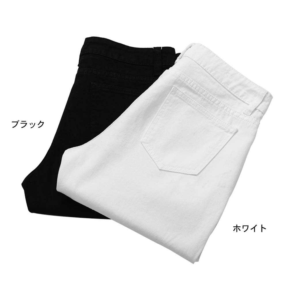 定番のデニムパンツとひと味違う個性的なデザイン、モノトーンカラーはトップスとの相性が抜群で着回しができる