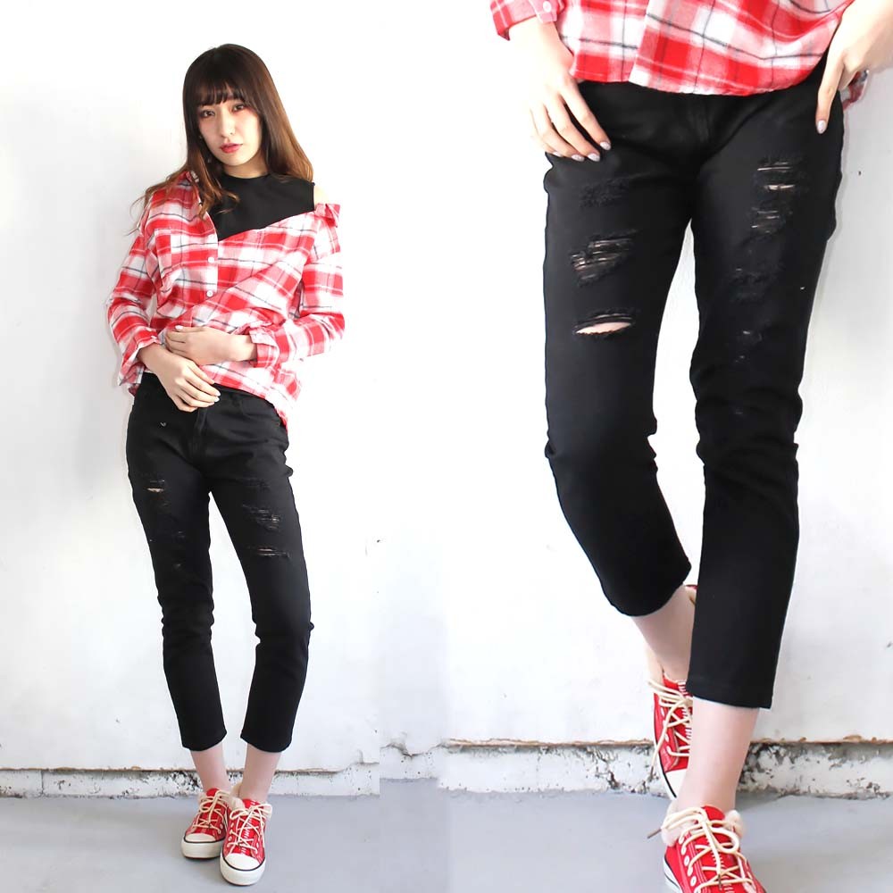 程よいダメージ加工がおしゃれでこなれ感たっぷりのクラッシュジーンズ