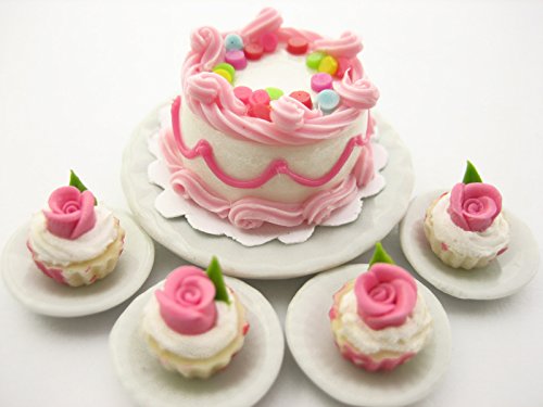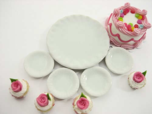 -. Title : Dollhouse Miniatures Food Cake & Rose Cupcake Ceramic Plate Supply Set 13377