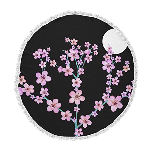 KESS InHouse Julia Grifol Cherry Blossom At Night Pink Black Round Beach Towel Blanket