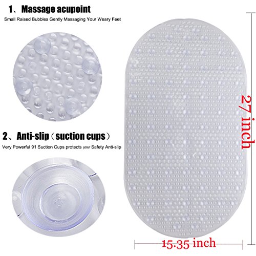 Anti Slip Bath Mat - Phatalates and Lead FREE - Non Slip Mats for Bathtub and Shower - Durable Mildew Mold Resistant PVC (27x15.35 inch, Clear)