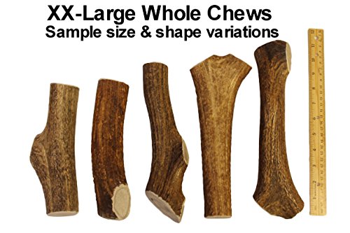 -. Feature : One Giant XXL Whole Grade A elk antler chew, L = 7-12 inch, Dia = 1.5-2.0 inch, For 75+ lb dogs / Long-lasting whole (un-split) antler bone for hours of content chewing. Satisfaction Guaranteed / A natural alternative to processed chews. Feel good knowing your pet is getting nature's best! / Each piece is hand-cut and carefully sanded to remove any sharp edges that may harm your pet / Supervise your pet during use. Remove if chew is worn to a size that presents a choking hazard.