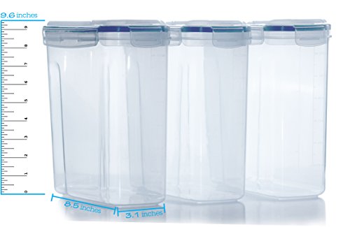 - KEEP YOUR FOOD FRESH & SAFE - With this set of 3 plastic containers, you can safely store away your food without worrying about anything getting into them. These amazing food storage plastic jars have a 4-sided locking lid with a light blue silicone seal, ensuring that no air or water enters into them. This keeps your cereal or any food super fresh. They are suitable for cereal, flour, sugar, coffee, tea, snacks, nuts, pasta, pet food or anything else you may need to store.