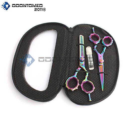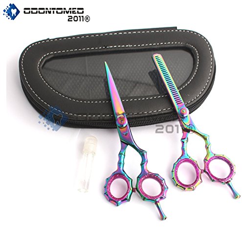 OdontoMed2011 OD2011-D-1533 NEW MULTICOLOR PROFESSIONAL RAZOR EDGE TITANIUM COATED HAIRDRESSING SCISSORS AND HAIR THINNING...