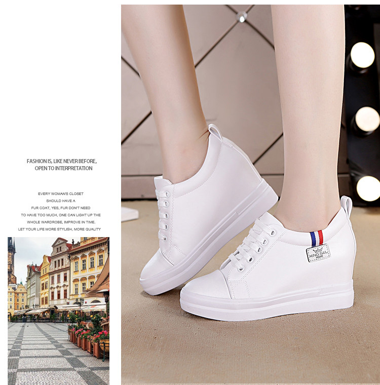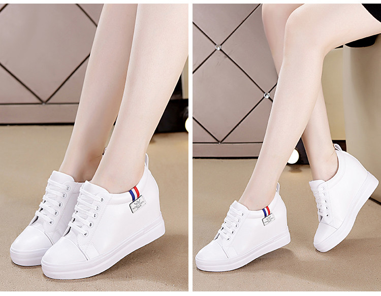 小白鞋女内增高女鞋春秋新款百搭透气坡跟旅游休闲鞋低帮