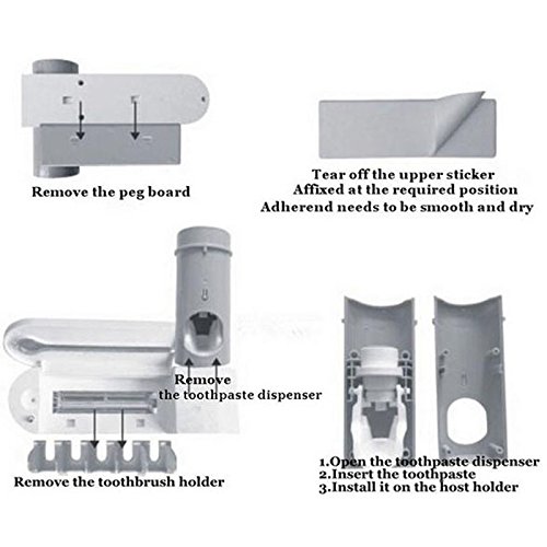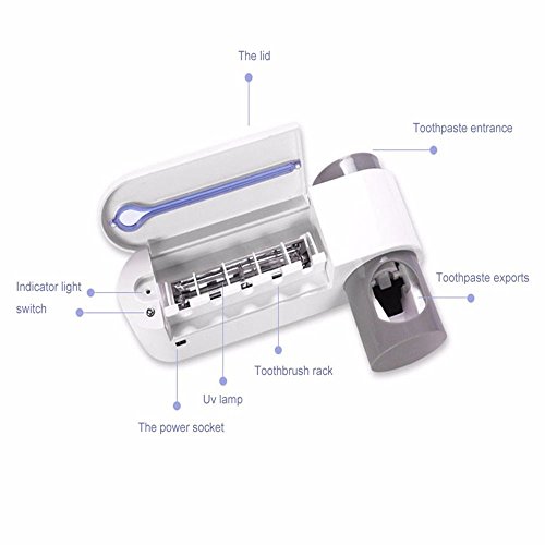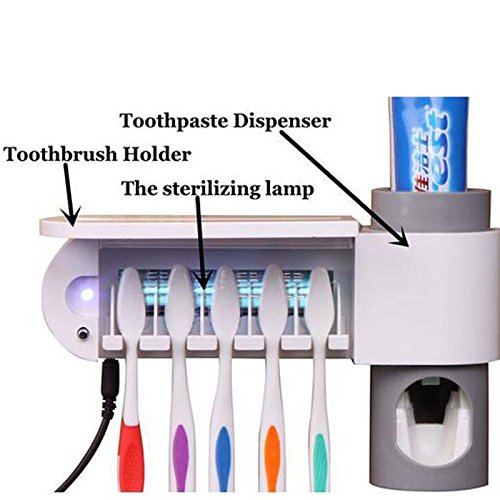 ProttyLife Automatic toothpaste dispenser -2 in I UV Light Ultraviolet Toothbrush Sterilizer Toothbrush Holder Automatic Toothpaste Dispenser + 5 Holders Bathroom Set