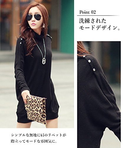 -. Feature : 【一着でスタイリッシュ】無駄な装飾を省き、着る人の魅力を引きだしてくれるデザインのドルマンチュニックワンピースです。カラーはブラック・グレーの2色、サイズはS・M・L・XLの4サイズと幅広くご用意しております。 / サイズ:【S】着丈:68cm 胸囲:98cm 肩幅:36cm 袖丈:56cm【M】着丈:70cm 胸囲:102cm 肩幅:37cm 袖丈:57cm 【L】着丈:72cm 胸囲:106cm 肩幅:40cm 袖丈:58cm【XL】着丈:74cm 胸囲:110cm 肩幅:41cm 袖丈:59cm ※画像と実際の色は、モニターの表示等により若干異なる場合がございます。サイズにつきましても若干の誤差が生じる場合がございます。 / さらりと1枚着るだけでクールでスタイリッシュな印象に。洗練されたモードデザインでシンプルな無地に肩のリベットが際立ってモードな雰囲気に。計算された細見せシルエットでゆったりめのサイジングで幅広い体型にフィット。さらにメリハリのあるシルエットで細見えも叶う計算されたデザイン。 / 小さいサイズから大きいサイズまで揃って日頃体型カバーが気になる洋服選びも、春 夏 秋 冬 の季節に合わせ、10代 20代 30代 40代と高校生 大学生 社会人 年齢を問わずお洒落を楽しんでいただけます。春、秋は1枚での着用で、冬は重ね着で着用でき、コートなどアウターとの相性もバッチリ。コーディネートに悩まず着回せる、使いやすさ抜群のアイテムです。 / ネックレスやペンダントに指輪、腕時計等のアクセサリーにも合うレディース服のAmazonランキングでも人気のお勧めのワンピースドレスです。彼女さんへの誕生日等のプレゼントにもお勧めです。