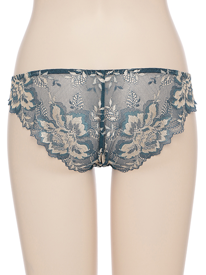 カップにはエレガントな花模様のレースを惜しみなく配し、アンダーベルトには控えめな光沢のサテンを採用。