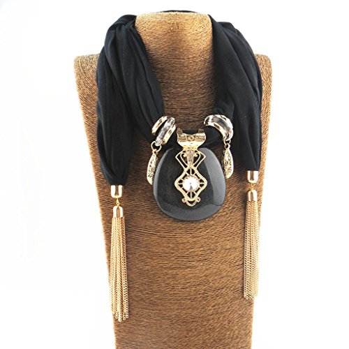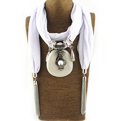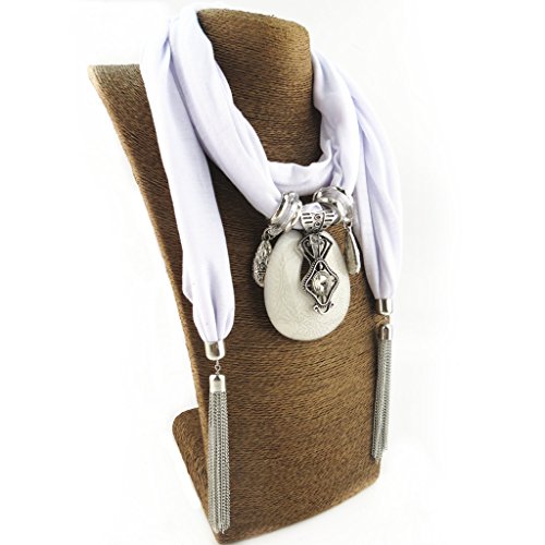 Binding : Apparel Product Description 100% brand new and high quality Features: Unique design combine pendant necklace with scarf. It makes a great gift for any occasion. As a scarf for warm,or headscarf to match your clothing,also as a decoration tied on neck or waist. Can be styled to complement any dress, blouse, jacket, or shirt for a polished look. Specification: Material:Polyester Color:Grey,White,Black Size:180x40cm/70.87x15.75'(Approx) Net Weight:145g Quantity: 1 pc Warm prompt: 1.Please note that low temperature washed,do not bleach and place under the blazing sun for quite a long time. 2.As different measuring methods,it will occur 1-3 cm deviation about the items,please ensure that it is okay for you before ordering. 3.Because of different monitors and lamplight,the picture may not reflect the actual color of the item,really thank you for your kind understanding! 4.Women Scarf only,other accessories(if any)irrelevant demo in the picture are not included. Packaging includes:Women Scarf x 1 (without retail package) 0