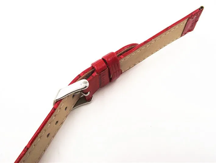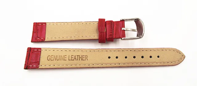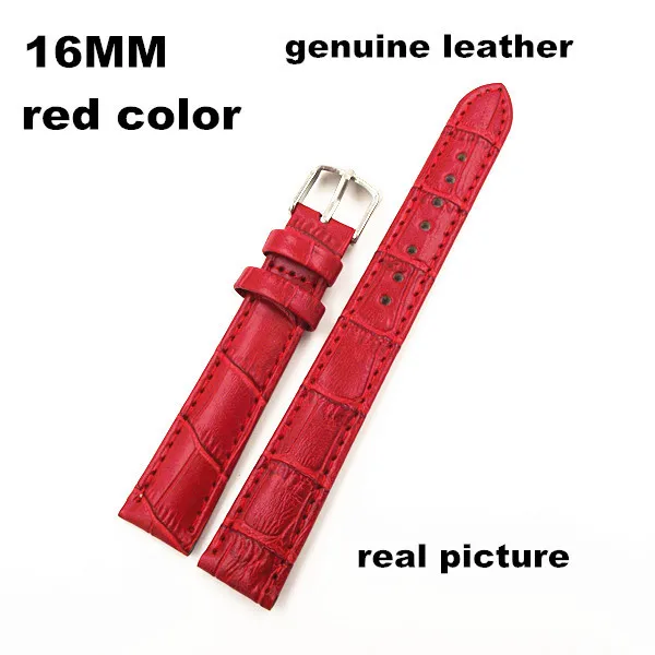 도매- 10 개/ lots 고품질 16mm 정품 가죽 시계 밴드 시계 끈 붉은 색- 070704