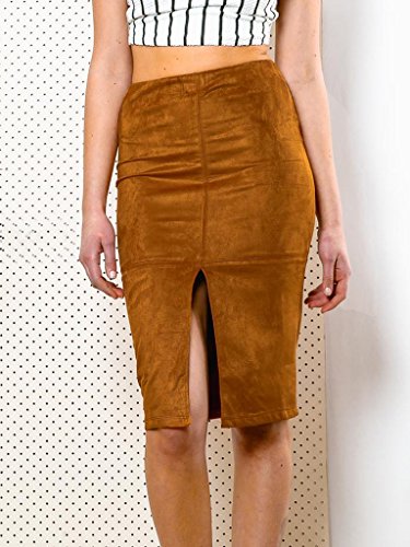 -. Title : Persun Women Brown Suedette Split Front Pencil Skirt