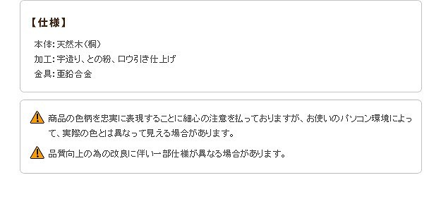 材質:本体-天然木(桐)・字造り・との粉ロウ引き仕上げ、金具-亜鉛合金(黒色)