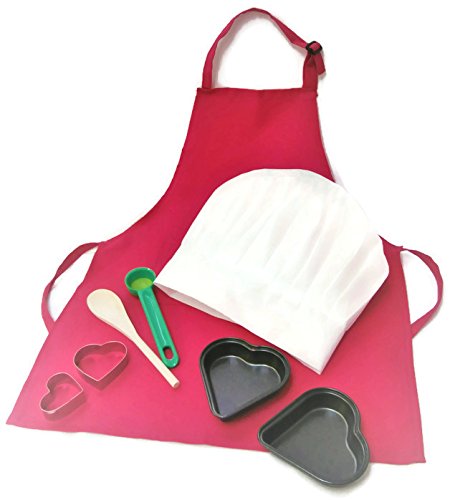 Valentines Baking Set For Kids Apron Chef Hat Heart Cutters