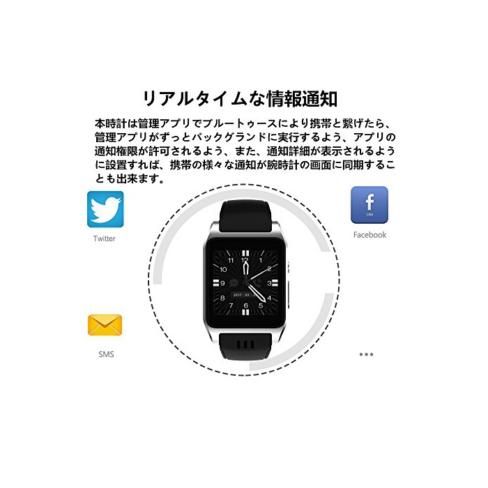 USB충전과 Wi-Fi:충전 단자는 마그넷식이 되어 있으므로 접근할 수 있으면 간단하게 접속 성과,컴퓨터와의 데이터 교환도,USB케이블 로 인해 행하는 것 를 할 수 있습니다.Wi-Fi와 연결되지만,자신이 무선LAN,핫 스포트로서 사용할 수 없고, 그리고,스마트 워치가 긴 시간에 사용 하지 않는 경우,Wi-Fi가 자동적으로 절단됩니다.